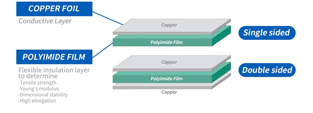 FCCL is an abbreviation for flexible copper clad laminate. FCCL is a key material of flexible printed circuit board (FPCB) and manufactured by laminating copper foil onto polyimide film(PI). FPCB, unlike rigid PCB, make it possible to realize product design with bending, folding, and sliding features.