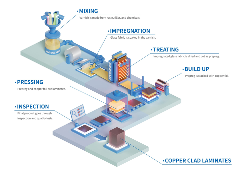 Doosan Corporation Electro-materials Copper Clad Laminate(CCL) manufacturing process is built on 50 years of experience.